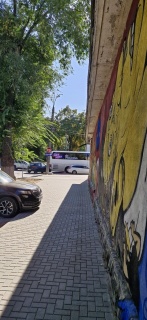 Street art beside a sunny sidewalk