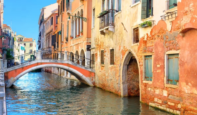 Venetian canal and historic bridge in Italy