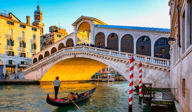 Venice gondola and Rialto Bridge, Italy