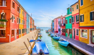Colorful houses lining a Venetian canal in Italy
